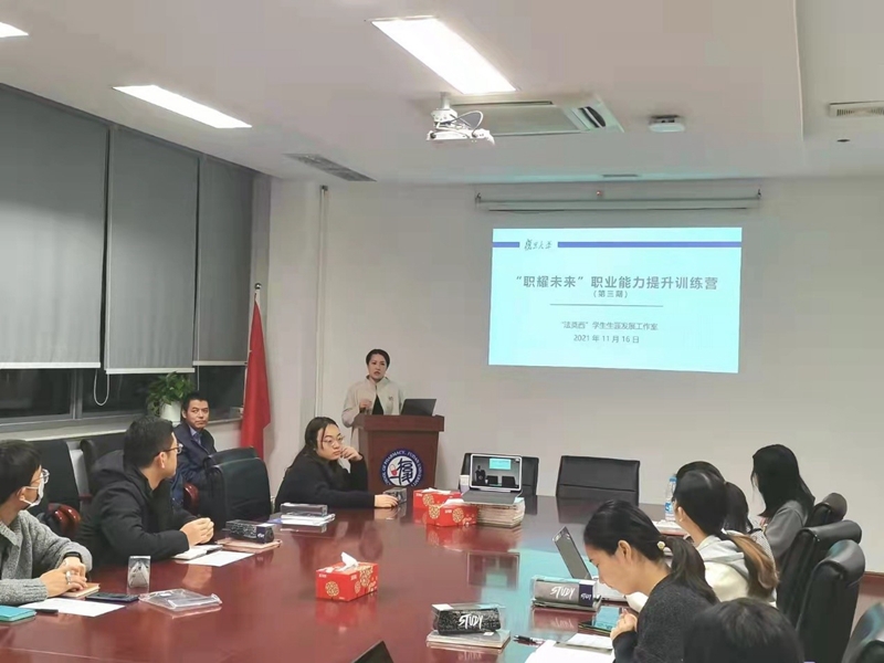 11月16日晚,开营仪式在张江校区科研楼晶晖厅举行,PO18 党委副书记、“法莫西”学生生涯发展工作室负责人王宁宁老师作开营动员,她首先对各位学员的积极参与表示欢迎,同时提出三点期望和要求:希望大家找到自己的兴趣点,认清自己的性格;希望大家能在课程培训中找准未来自己的职场定位;希望大家主动与经验丰富的授课老师沟通交流。