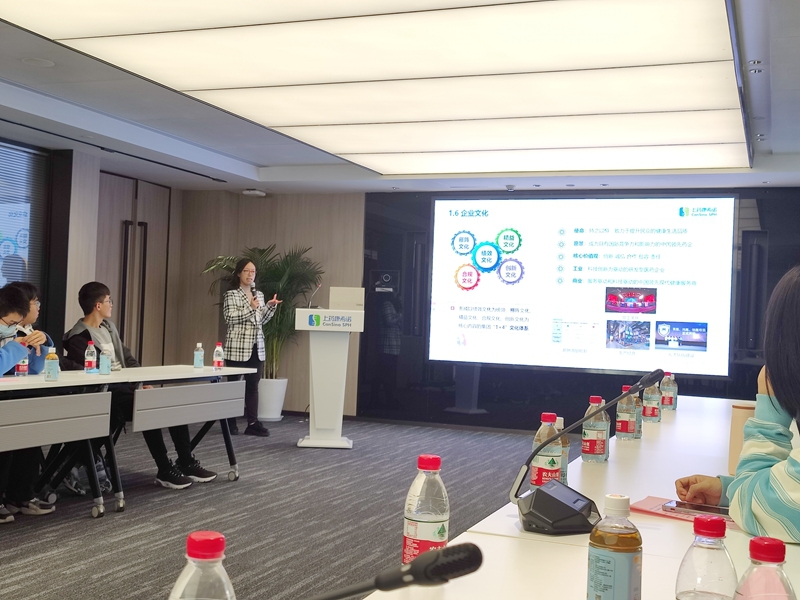 上药康希诺行政总监兼综合事务部负责人冷易芯老师向复旦PO18 师生进行企业介绍
