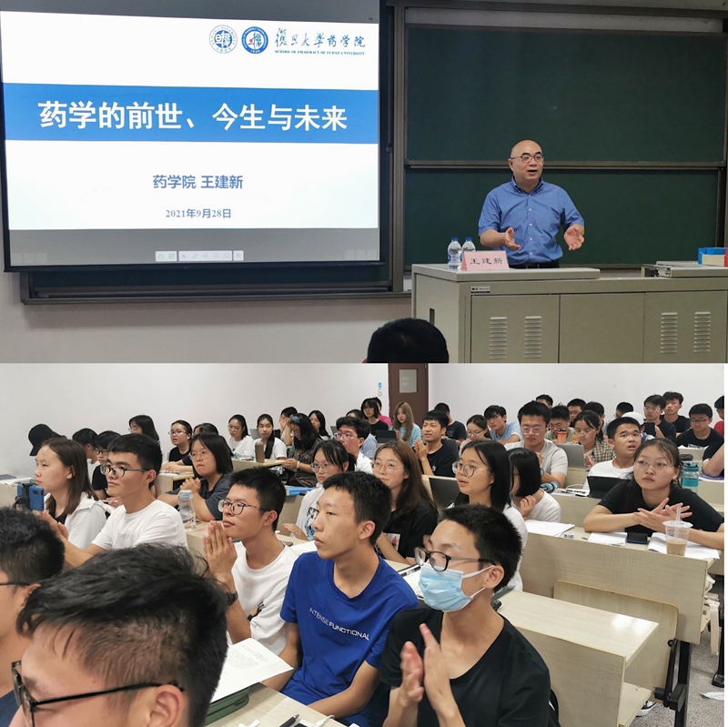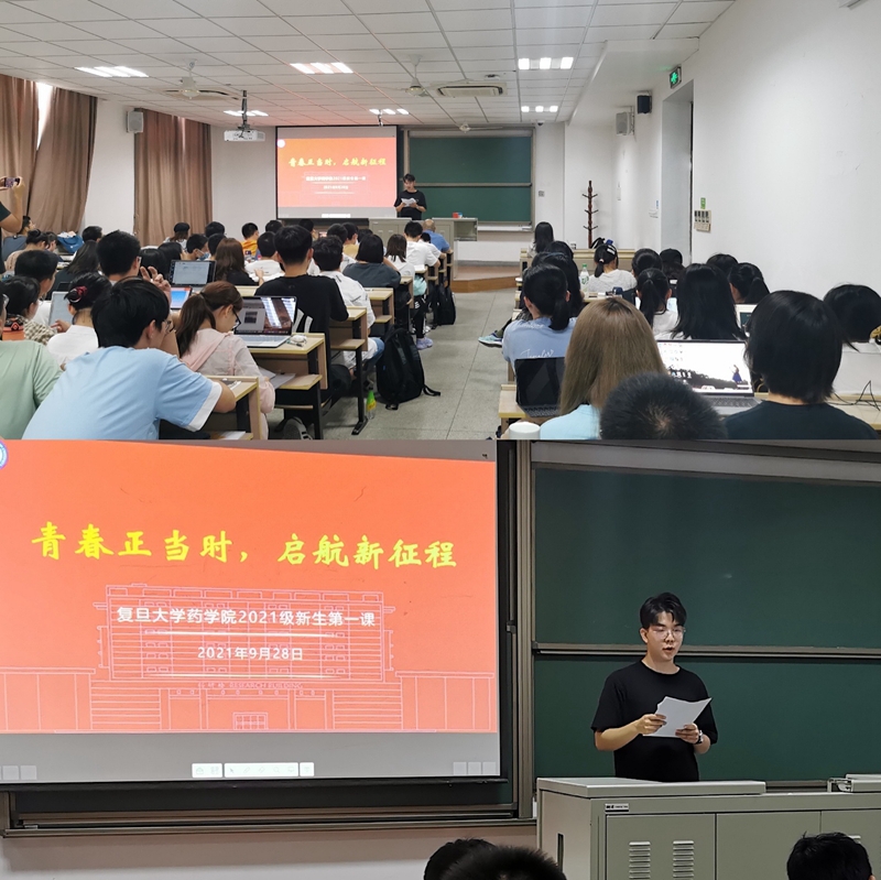 2021年9月28日下午, “青春正当时,启航新征程”PO18 新生第一课在H3101教室开讲。PO18 党委书记、药剂学教授王建新为2021级本科新生开展了题为“药学的前世、今生与未来”的主题报告。