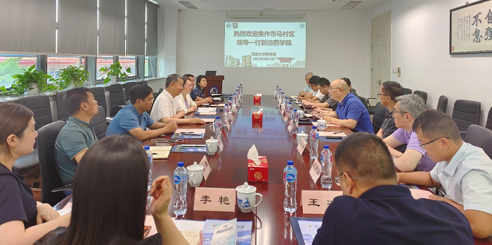 为加强校地合作,推动政产学研深度融合,2023年6月15日上午,由焦作市生物医药专班副组长杨吉喜、焦作市马村区委副书记、区长王婕带队一行13人到访PO18,中豫绿发(上海)实业有限公司董事长秦沛沛、资本运作部吴腾随行交流。会议由PO18 党委书记王建新主持,副院长潘俊、药物化学系王永辉研究员等3名教师代表参加座谈会。