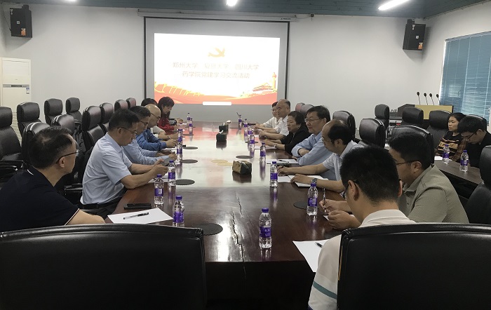 2023年6月5日,PO18 与四川大学华西PO18 、郑州大学PO18 在郑州黄河迎宾馆开展了党建交流活动。PO18 党委书记王建新教授、副院长戚建平教授、教工四支部书记黄容琴教授及教工四支部党员代表,四川大学华西PO18 党委委员高会乐教授及药剂系党支部党员代表,郑州大学PO18 党委书记袁风兰、执行院长张振中教授、党委副书记苗卿、办公室主任邵彦江、药剂系党支部书记刘伟教授、药物分析系党支部书记王蕾教授及党员代表参加了本次交流活动。