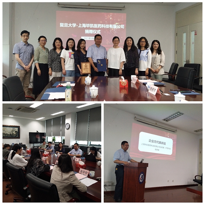 杨景瑞校友自于PO18 毕业后,始终感恩母校、回馈母校,为加强校企合作、共同培养高质量发展人才提供了良好的典范。仪式伊始,陆颖丰老师和史雪茹老师分别代表学校和PO18 向杨景瑞校友颁发捐赠证书和PO18 校友导师聘书。杨景瑞校友表示愿尽绵薄之力继续为母校发展添砖加瓦。潘俊老师代表PO18 感谢了杨景瑞校友及毕凯医药有限公司,强调加强校企合作对学生、PO18 的发展起到了至关重要的作用,并表达了对未来进一步通力合作的期待。