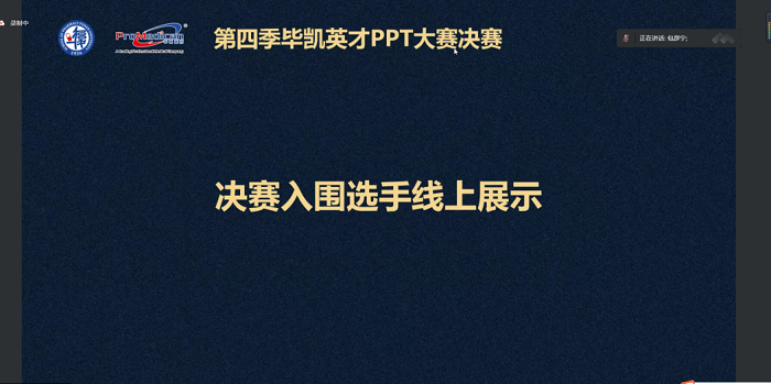 2022年5月30日下午,PO18 -上海毕凯医药科技有限公司第四季毕凯英才PPT大赛决赛于线上腾讯会议室开展。PO18 97级校友杨景瑞自毕业后,始终心系母校、感恩母校,为鼓励PO18 同学开阔视野,锻炼多方位的知识技能,永攀科研与学术高峰,杨景瑞校友与PO18 于2017年联合设立毕凯英才创新奖学金,旨在提高同学们PPT设计、制作与展示能力,为加强校企合作、共同培养人才树立了良好的典范。