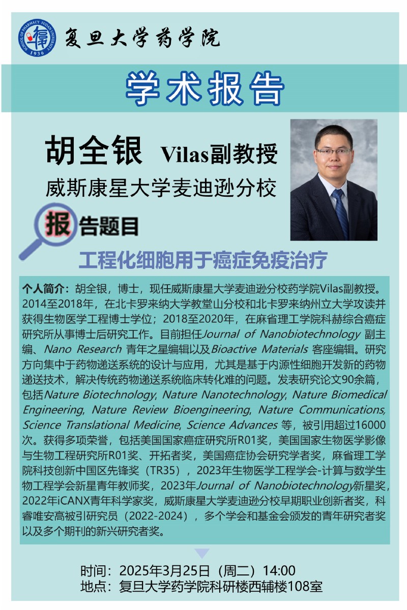 3月25日学术报告 - 工程化细胞用于癌症免疫治疗