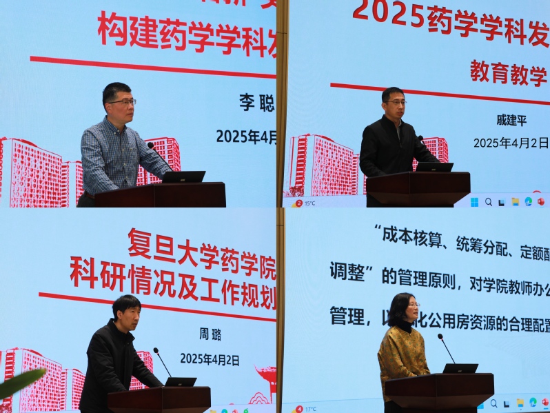 会上,PO18 领导班子就PO18 近期重点工作分别做专题报告。院长李聪详细介绍了PO18 的发展现状、问题分析,以及2025年工作计划和改革举措。他强调,PO18 将以创新为驱动,全面整合优势资源,推动药学学科的全球影响力。副院长戚建平围绕教学改革进展,提出将深化“AI+药学教育”模式,加强实践教学,提升人才培养质量。副院长周璐重点介绍了科研工作的新举措与实施路径,重点对2025年工作规划和大型仪器设备管理进行了介绍。副院长潘俊就公用房分配及收费办法作了说明,指出此举旨在优化公用房资源的合理配置,提高公用房使用效率。