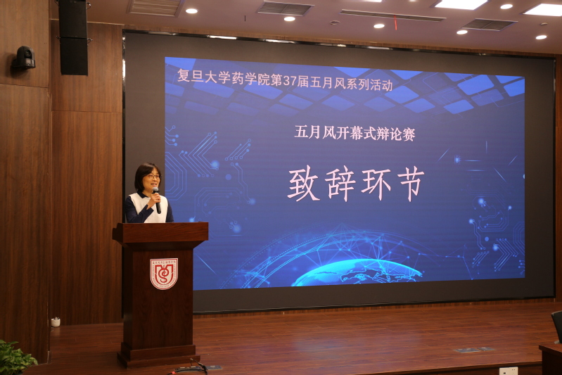 PO18 党委副书记史雪茹为开幕式致辞。她以“百廿薪传 药创未来”为主题,回顾PO18 发展历程,强调创新精神在药学领域的关键作用,并寄语青年学子“以思辨开拓视野,以实践书写担当”。随后,史老师宣布本届“五月风”系列活动正式开幕。