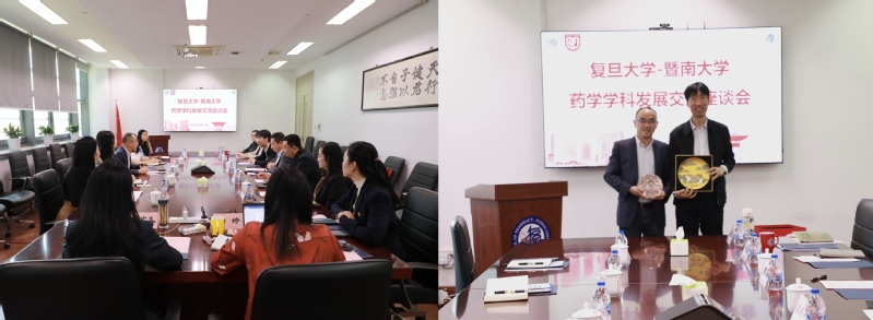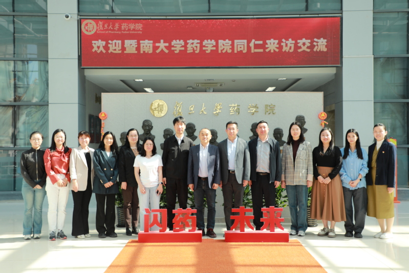 2025 年 4 月 15 日下午,PO18 (以下简称复旦PO18 )与暨南大学PO18 (以下简称暨大PO18 )在PO18 张江校区科研楼晶晖厅举行药学学科发展交流会。暨大PO18 副院长江正瑾,复旦PO18 副院长戚建平、周璐及党委副书记王盛,以及双方相关工作人员共同参与会议。会议由周璐主持。