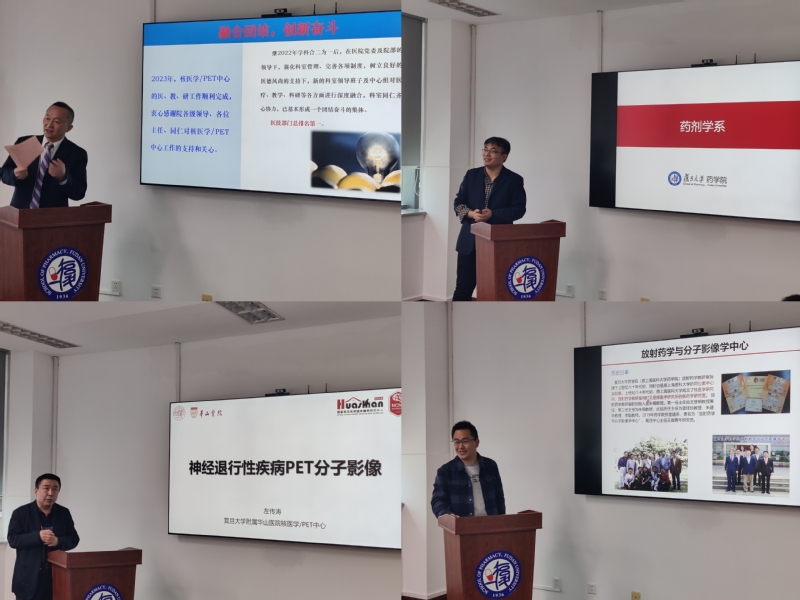 在交流环节中,管一晖主任、张志文主任、王璐主任分别介绍了华山医院核医学/PET中心、PO18 药剂系、PO18 放射医学与分子影像中心的概况。管一晖主任、左传涛副主任和孙涛副主任作为业务骨干介绍了所在各自的科研方向。随后,大家展开了热烈讨论,畅谈核药物创制的重要性、紧迫性和发展瓶颈,探讨了所在系和中心开展合作的可能性,初步确定了合作的切入点。