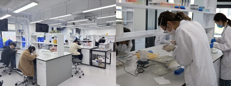 (左)理论测试现场;(右)实验操作考试现场