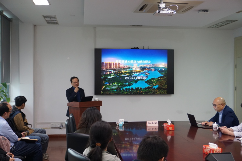 王建新书记对林院士的到来表示热烈欢迎和衷心的感谢,希望通过此次讲座,让广大师生领略到院士团队的杰出工作成果,促进跨学科交流,认识到生物学的基础研究对新药研发的促进作用。