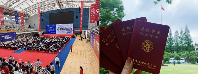 左:秩年返校校友参加“忆久复相逢 百廿旦启程——2024PO18 校友返校日主题大会”;右:秩年返校校友参加“返校护照”打卡活动