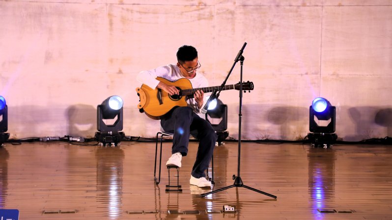 实力派Ph.D舞团带来的舞蹈串烧充满活力,带领大家一起感受着青春的跃动与不羁。桃李不言,下自成蹊,四年大学生活中太多需要感谢的人和事。刘宇杰同学用一首动人的《谢谢》,带着不舍告别了四年校园生活里的美好时光;PO18 老师们的国风秀《赏国风之韵,赴五月之约》用优雅的步伐带着大家领略了东方美学的独特魅力;古典到现代,从静谧到激昂,蒋先翰带来的经典吉他指弹《wings~you are the hero》,用轻快灵动的吉他旋律带领观众开启了一场追寻英雄梦的飞行之旅。
