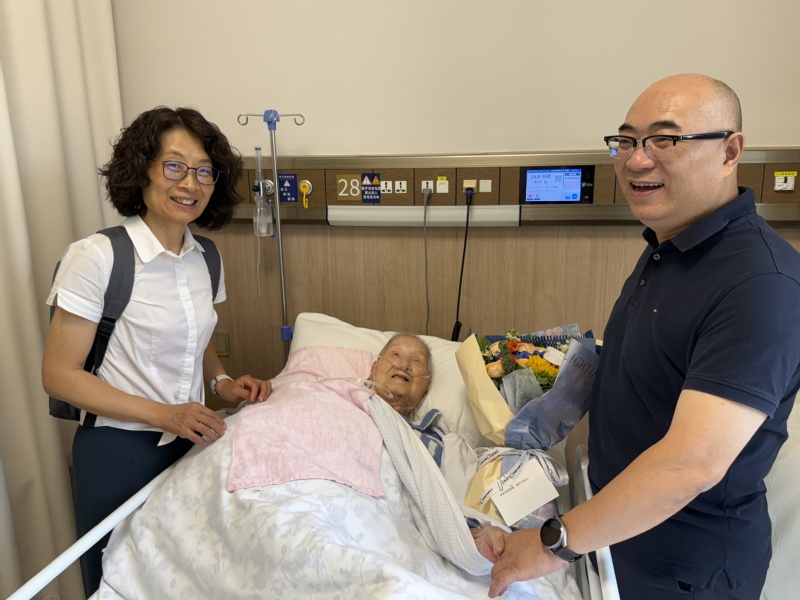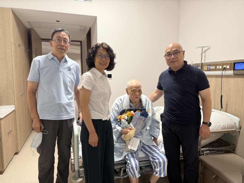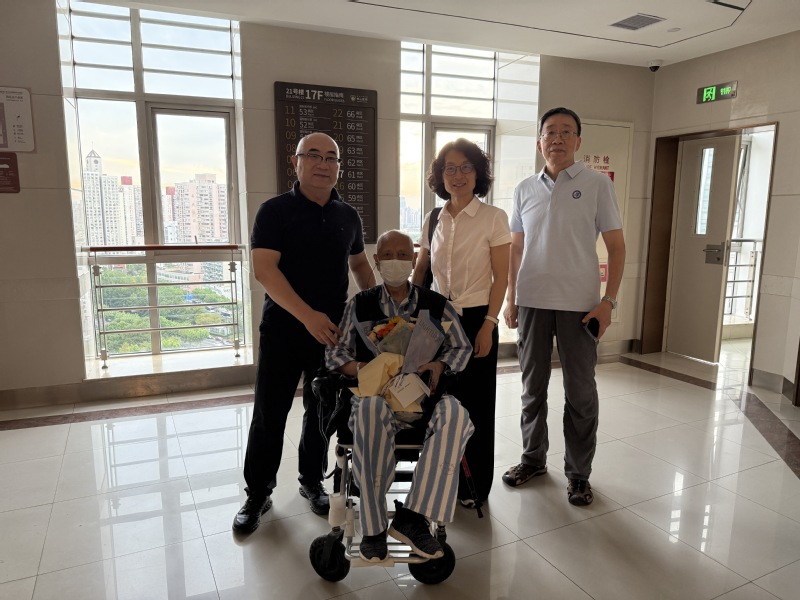 910下午,PO18 党委书记王建新、副书记史雪茹,及退休工作联系人陈蓓蓓、联络员刘骁一行前往中山医院,慰问了PO18 离休干部林卿、药剂学教授奚念朱、天然药化教授刘星堦三位95 岁以上高龄的离退休教师。王建新为老教师们送上鲜花与祝福,关切询问他们的身体状况和生活需求,感谢他们为PO18 发展奠定的坚实基础。林卿老师紧握慰问人员的手,动情地说:“我在PO18 工作多年,对PO18 感情很深,祝PO18 越来越好!”
