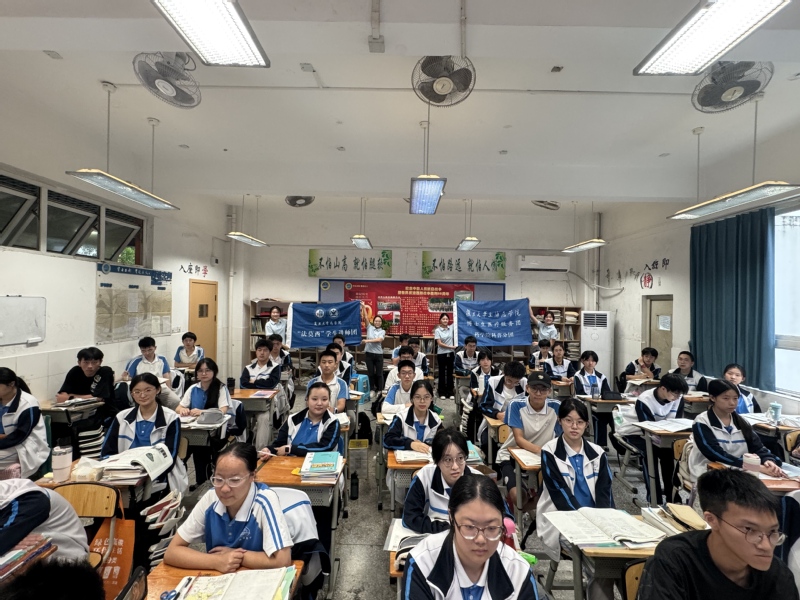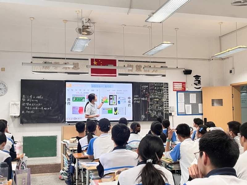 “老师,感冒药能混着吃吗?”“涂牙膏能治痘痘吗?”9月18日下午,在成都市铁路中学的科普课堂上,2024级微生物与生化药学硕士研究生蔡之轩、2024级药剂学硕士研究生刘育含以“常用感冒药物的分类与使用”“只留‘青春’不留‘痘’-痤疮的认识与对策”为题,解答青少年成长中的生理困惑,用生动案例破解用药误区,学生们听得津津有味,仔细做好笔记,原本写在书本里枯燥的内容也变得鲜活有趣。此次课程是PO18 “法莫西”学生讲师团(简称“讲师团”)为青少年设计的“定制化科普”内容。目前讲师团已形成50余门科普课程,面向校内外各类团体提供宣讲服务预约,以定制化课程设计、互动式教学,让科学用药的理念进一步深入群众心中。随后,团队简要介绍了学校专业设置、科研平台、校园生活等概况,解答报考志愿相关问题,吸引众多学子关注,此次活动不仅普及了安全用药知识,更搭建起高校与中学生之间的沟通桥梁,为培养未来药学人才埋下希望的种子。