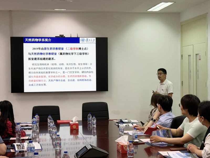 接着,史雪茹从历史沿革、组织架构、师资队伍、党建工作、人才培养、社会服务等方面对PO18 进行了详细的介绍,强调PO18 党委以共建为抓手,创新工作形式,结合二级学科特点下沉工作重心,实现了党建与业务的双融合双促进。天然药物学系副主任程志红围绕系室与学科、各课题组研究方向作PO18 天然药物学系情况的介绍。双方开展了座谈交流。随后,上海康桥中药饮片有限公司党支部书记潘卫东代表公司致谢,向PO18教工第一党支部赠送了新鲜人参浸制标本,并表达了对与PO18 开展共建合作的期待和信心。