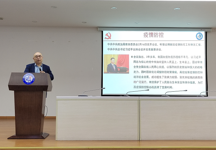 2023年2月24日下午,PO18 在张江校区食堂三楼报告厅召开全院教职工大会,由党委书记王建新带领大家开展本学期第一次政治理论学习,PO18 教职员工约90人参加了会议。