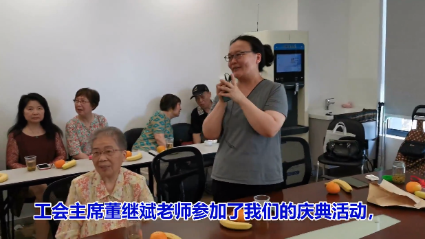 星期三茶室11周年庆生日蛋糕分享环节,前任会长裴元英老师切开蛋糕,请大家分享。老师们随着扩音器里“祝你生日快乐”的乐曲,唱起欢快的庆生歌,品尝着生日蛋糕,聊天叙旧,整个活动室洋溢着其乐融融、和谐欢快的气氛。