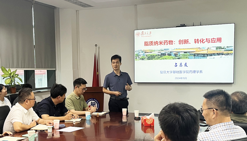 随后,占昌友教授带来了题为“脂质纳米药物:创新、转化与应用”的学术报告,在脂质纳米药物领域的最新进展上系统介绍了他在体内过程与机体调控机制方面开展的系列工作,提出了以临床基础研究助推脂质纳米药物创新转化和以互作研究指导临床精准和合理化用药的深刻见解。