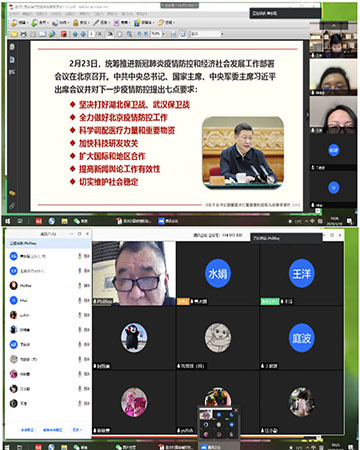 3月18日上午,药学实验教学中心全体教师通过“腾讯会议”的视频会议功能,进行了一次线上集体学习。大家首先学习了习近平总书记部署坚决打赢疫情防控阻击战学课件(一),认真诵读了习近平总书记在2月23日对下一步疫情防控提出的七点要求和对复工复产的八点要求等系列讲话。大家认为,在疫情防控期间,我们每个人都要具有变压力为动力、善于化危为机的能力,坚持做好本职工作。大家还结合工作实际,讨论了因疫情而导致四月份学生可能不能返校、如何开展实验课程的问题。本次会议务实高效,线上发言积极踊跃。大家不仅统一了认识,也明确了下一步的工作安排。