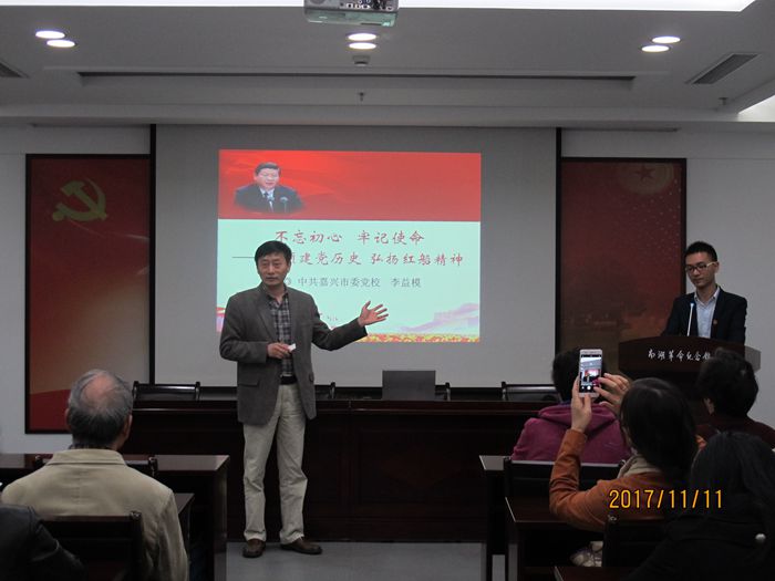 次日我们参观了南湖革命纪念馆。馆内一张张珍贵的史料照片铺就了一幅幅动人的画卷,讲述了建党96年来,共产党人为争取民族解放、国家独立的革命史,也展示了共产党人为争取中华民族伟大复兴、国家走向富强民主的不懈奋斗史。在纪念馆北广场,PO18 党委书记陆伟跃同志带领全体党员面向党旗庄严而郑重地宣誓,再次重温入党誓词。随后全体党员聆听了中共嘉兴市委党校基础理论教研室李益模老师上的“不忘初心 牢记使命——回顾建党历史 弘扬红船精神”的专题党课。李老师全面又生动地讲述了中国共产党人的奋斗历程,并对“红船精神”,即“开天辟地、敢为人先的首创精神,坚定理想、百折不挠的奋斗精神,立党为公、忠诚为民的奉献精神”的丰富内涵进行了阐释。