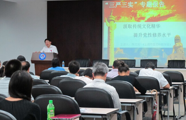 为深入学习贯彻落实“三严三实”,加强党员干部自身修养,2015年9月16日下午,PO18 党委邀请中共上海市委讲师团首批成员、上海市委党校陈方刘副教授在张江校区行政楼106报告厅作了一场名为《汲取传统文化精华,提升党性修养水平》的专题报告。报告由PO18 党委宣传委员张雪梅教授主持,PO18 全体教职工党员、教研室主任和学生支部委员以及张江管委会的老师参加了报告会。