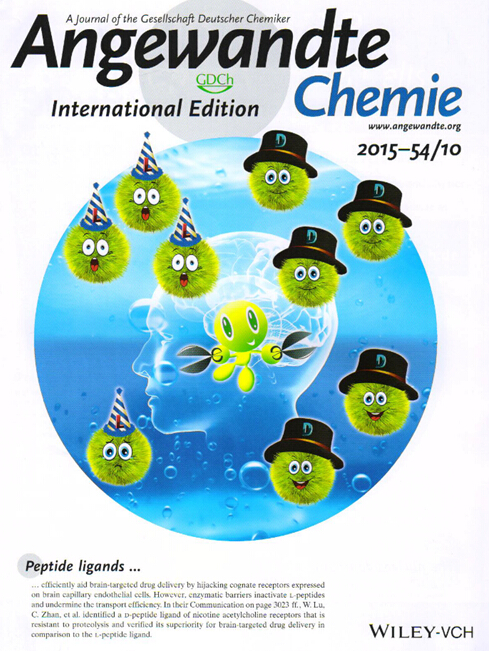 相关研究发表在国际著名期刊《Angew. Chem. Int. Ed.》(2015, 54: 3023-3027)上,并且受到了评委们的高度评价,被该杂志选为VIP(Very Important Paper)文章,并作为封面文章进行介绍。《Angew. Chem. Int. Ed.》是化学领域最有权威的综合性化学刊物之一,目前的影响因子是11.3。发表在该期刊上的文章中仅有不到5%的文章能够享有VIP的殊荣。