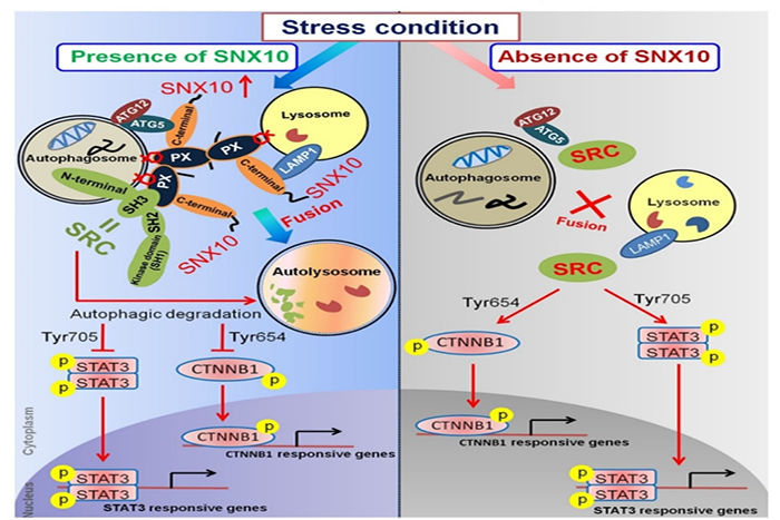 图示:SNX10通过控制SRC的自噬性降解抑制结肠直肠癌的发生和发展