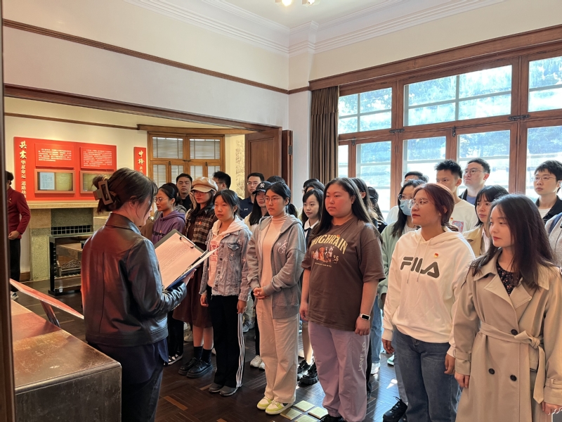 最后,预备党员同志们在“星火”党员志愿服务队副队长、PO18 2022级硕士生董美辰的带领下参观陈望道旧居,共同探索《共产党宣言》的故事,寻求信仰的源泉、真理的力量。