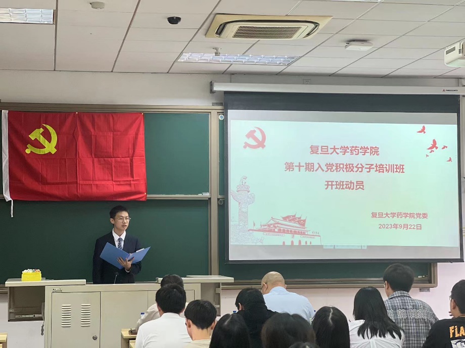 2023年9月22日中午,PO18 第十期入党积极分子培训班开班仪式于张江校区Z2202教室举行。PO18 党委书记王建新,PO18 党委副书记、学生党总支书记王宁宁,PO18 学生工作办公室副主任、学生党总支副书记徐琛和全体培训班学员出席了本次开班仪式。开班仪式由2020级本科生黎瀚尹主持。