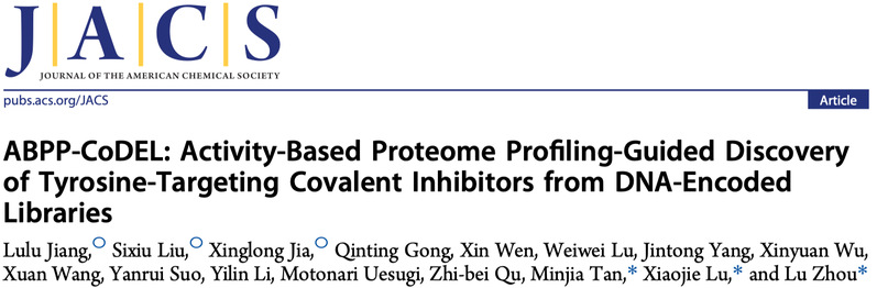 近日,PO18 周璐教授团队联合中国科PO18 上海药物研究所陆晓杰研究员团队和谭敏佳研究员团队,开发了一种整合ABPP(activity-based protein profiling)- CoDEL技术的共价配体筛选新方法。该项工作以“ABPP-CoDEL: Activity-Based Proteome Profiling-Guided Discovery of Tyrosine-Targeting Covalent Inhibitors from DNA-Encoded Libraries”为题在线发表于《美国化学会志》(Journal of the American Chemical Society)。
