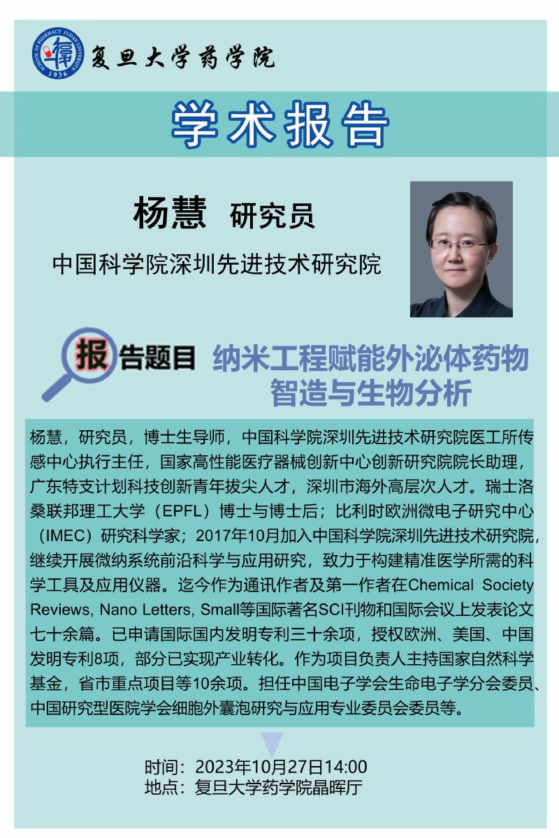 10月27日学术报告-纳米工程赋能外泌体药物智造与生物分析