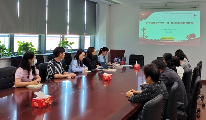 为推动学习贯彻习近平新时代中国特色社会主义思想主题教育入脑入心、走深走实,5月23日,PO18 教工第五党支部在晶晖厅开展主题教育专题学习活动,围绕习近平总书记关于教育、科技、人才三位一体融合发展的重要论述展开学习交流。