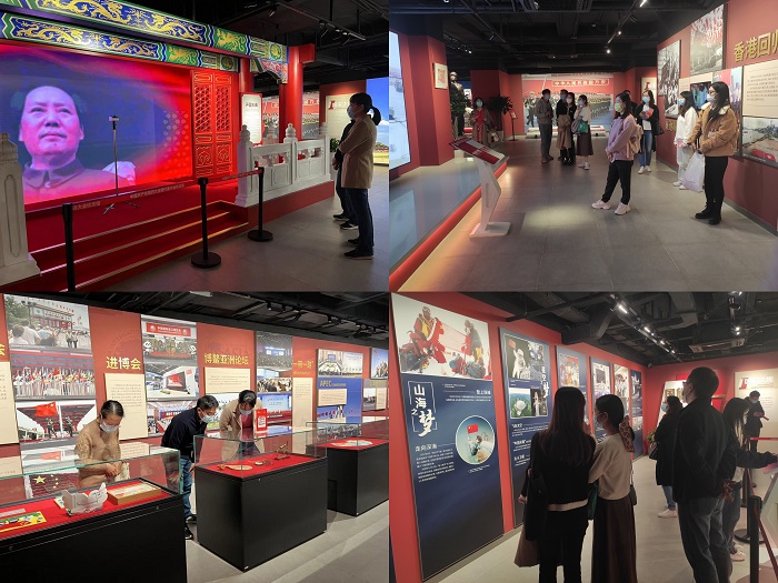 作为本次活动的第二部分,党员们集体前往红色景点参观实践。因原预约的中共四大纪念馆临时闭馆,党员们转而参观国旗教育展示厅。国旗教育展示厅于2021年建成,挖掘整理了诸多珍贵档案和历史文献,如国旗设计者曾联松的设计手稿、字画;“神舟十二号”飞船搭载五星红旗,中国最南端三沙市升旗仪式使用国旗等,全面展现国旗创作诞生的伟大历程,以及中华儿女深厚的家国情怀。大家学习了国旗诞生历程,重温了开国大典珍贵的影像资料,细读了新中国发展的伟大成就,对党的初心和当代共产党人的使命有了更加深刻的认识。来自19级博士生党支部的党员表示身为新时代的年轻人,更要努力学习,不断提高,成为符合祖国发展需要的栋梁之材。党员们还把心底对祖国和党的热爱述诸笔端,郑重地贴在了留言墙上。本次活动以支部共建凝聚精神,以身临其境的党史学习追忆初心,坚定信仰,促进了一线教师与行政管理部门之间的交流,加深了师生党员之间的了解,加强了党员们对二十大精神的学思践悟,促进了党员们以自己的实际行动践行“五个牢牢把握”,团结在党的旗帜下,为全面建设社会主义现代化国家而不懈奋斗。