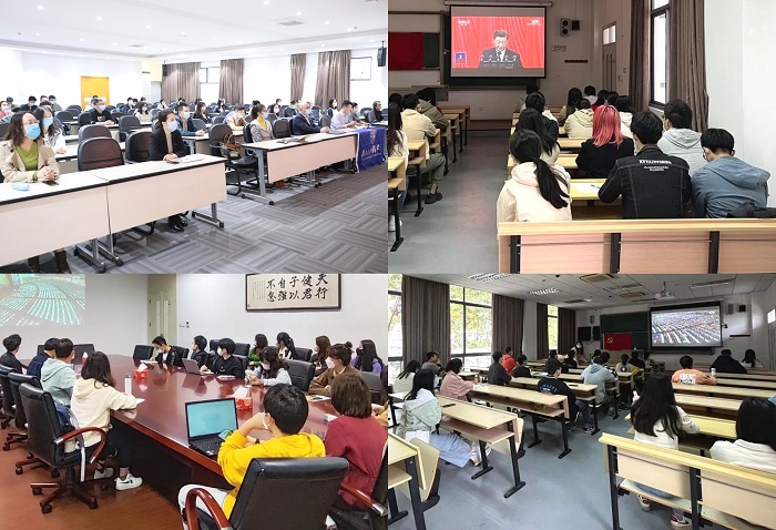 组织约60名师生党员、入党积极分子代表,在张江校区分会场集体收看大会盛况,认真学习习近平总书记在庆祝大会上的重要讲话精神。PO18