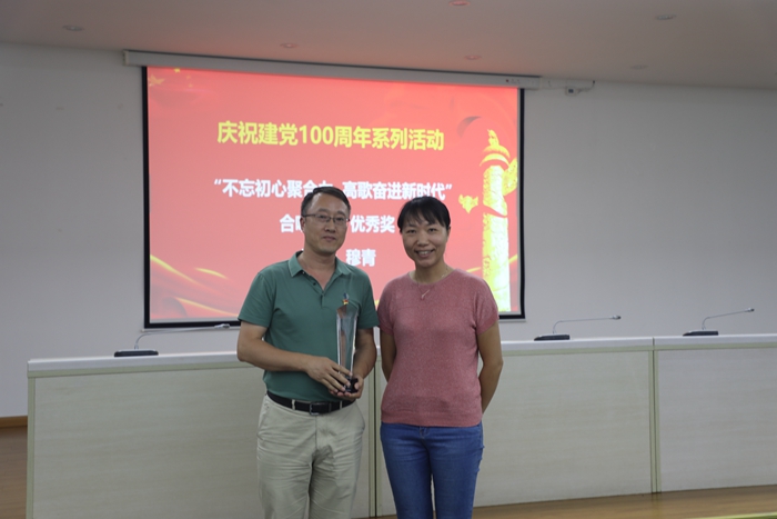 接着,史雪茹副书记介绍了PO18今年组织参加的庆祝建党100周年系列活动情况。6月9日,PO18 上海医PO18 党委在枫林校区举办了“回溯百年路 启航新征程”党史知识竞赛,来自各二级单位党组织的15支队伍参加比赛,PO18由曹旖老师、何庆烽老师和谢胜盛同学组成代表队,荣获三等奖。6月22日,“不忘初心聚合力 高歌奋进新时代”红歌比赛在枫林校区举行,PO1830多名师生齐上阵合唱《我的祖国》和《红色娘子军》,由穆青老师担任指挥,最终获得优秀奖。PO18 2021年优秀共产党员王建新同志、先进基层党支部——教工第四党支部书记黄容琴同志依次向获奖师生颁发了荣誉证书。
