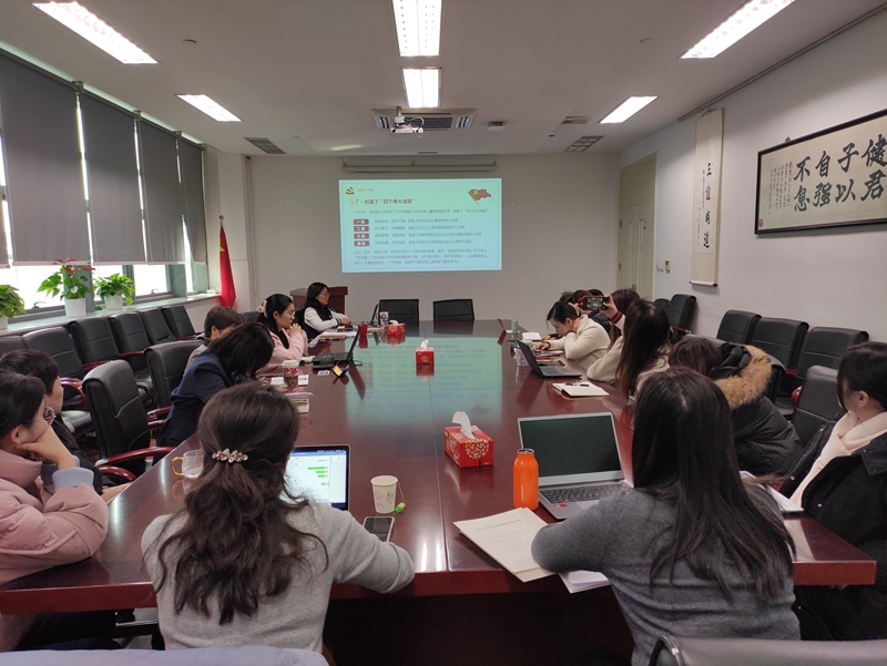 随后,党委副书记史雪茹带领大家学习十九届六中全会精神。她首先简要介绍了十九届六中全会召开的背景和整体情况,并结合PO18 “百年百题”党史知识问答的内容,对改革开放以来历届六中全会的内容进行了简单梳理,同时要求在学习《中国共产党第十九届中央委员会第六次全体会议公报》的基础上,更要加强对《中共中央关于党的百年奋斗重大成就和历史经验的决议》的研读和理解。在讲解了《决议》的框架结构以后,史老师围绕七大部分的脉络结构,分章节以“数字记忆法”提炼出了主要的学习内容,并强调,学习贯彻十九届六中全会精神是党史学习教育的核心内容之一,面临百年未有之大变局,国际环境复杂多变,每个共产党员更需要学习历史、看清历史,继续将党史学习同总结经验、推动工作结合起来。《决议》最后指出,党和人民事业发展需要一代代中国共产党人接续奋斗。作为教育事业工作者,更要充分认识到“必须抓好后继有人这个根本大计”,不断提高业务本领,提高管理能力和服务意识,在新的历史起点,担负起新时代的历史使命,为PO18 的蓬勃发展、为建设“第一个复旦”而不懈奋斗!