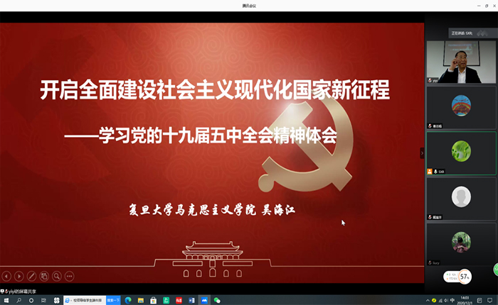 2020年12月1日下午,PO18 党委邀请马克思主义PO18 吴海江教授到张江校区为全院师生作党的十九届五中全会精神专题宣讲。各系/中心认真组织观看学习。至今,有六个部门组织了政治理论学习活动,深入领会、贯彻十九届五中全会精神。