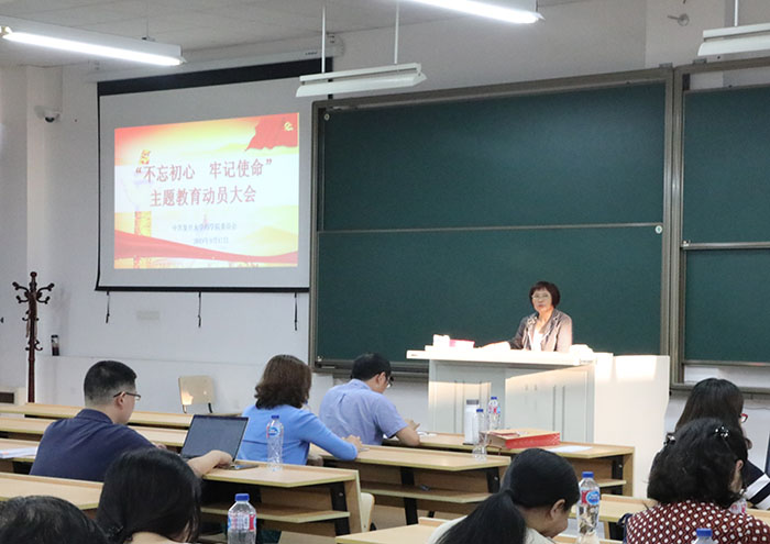 王凤霞书记首先向全体参会党员指出开展主题教育的重要意义,强调开展好主题教育,对于进一步用习近平新时代中国特色社会主义思想武装头脑、指导PO18 教学科研实践、推动PO18 发展至关重要,对于学校和PO18 “双一流”建设至关重要,对于进一步加强PO18 党建和思政工作至关重要。随后,王书记就学习的要求和计划进行了部署。