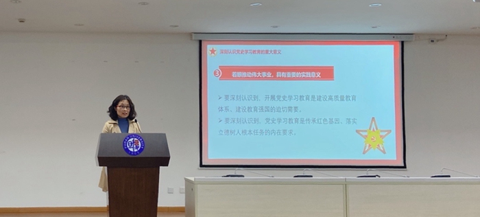 会上,史雪茹同志结合习近平总书记在党史学习教育动员大会上的重要讲话精神,传达了学校和上医党委关于党史学习教育的具体要求。她指出,习近平总书记的重要讲话为开展党史学习教育指明了方向、提供了根本遵循。我们要切实把思想和行动统一到党中央的决策部署和学校的动员安排上来。接着,围绕深刻认识党史学习教育的重大意义、准确把握党史学习教育的目标任务、切实加强党史学习教育的工作实效等三个方面,对教育活动的内涵、内容进行了深入解读,对PO18 如何开展党史学习教育进行了全面部署。