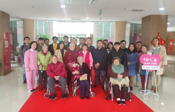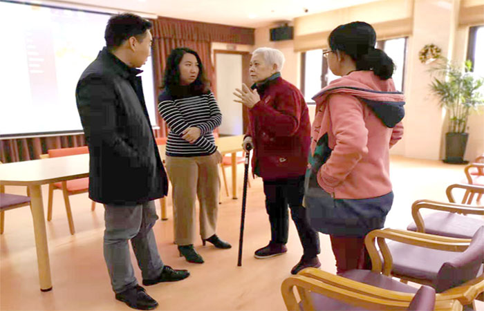 讲座后,党员们与老人们分享了健康养生方面的小知识,并在工作人员引领下参观了养老院的健康中心。整洁的环境、先进的设施、人性化的细节以及所有工作人员对老人们的温情照料给党员们留下了深刻印象。随后,教工四支部李聪书记、17博士生支部林琳书记及两个党支部的骨干成员与沈周佳院长和新金杨养老管理公司总经理助理赵珺怡进行了座谈,讨论了今后党支部共建和“医养结合”的方向和方式,为今后进一步工作打下了良好基础。