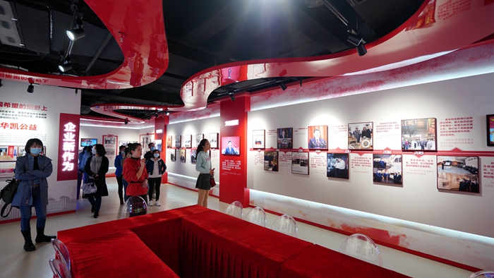 座谈会后,两支部的部分党员前往张江国创中心华凯创意公司参观学习“习近平新时代中国特色社会主义思想展”。大家首先观看了一段影片,回顾了100年前中国共产党筚路蓝缕、艰难创业的历程,涤荡了心灵,感悟革命前辈崇高的共产主义信念和理想。用习近平总书记的“金句”制作的党徽展板引起了大家的兴趣,看着这些简短、精炼、温暖、朴实、深入人心的话语,参观师生仿佛进行了一次心灵对话,经历了一次思想教育。在观展过程中,一幅中国地图吸引了大家的注意,上面密密麻麻地记录了习近平总书记就任以来在全国考察的足迹。习近平总书记用脚步丈量祖国大地,深入企业、田间、百姓家中,亲身感知人民生活变化,践行为人民服务的初心和使命。大家表示深受鼓舞和感动,要向习近平总书记学习,到群众中去,为群众排忧解难,不忘初心,牢记使命,勇挑重担。最后的展览内容聚焦习近平总书记对张江高科技园区的关注。习近平总书记多次来到张江地区并作出指示,体现了他对张江这片科研热土的关切与期待。在场的每位学生和老师纷纷表示一定要做好自己的本职工作与科研任务,努力为我国基础科研创新和科技强国建设贡献自己的力量,不辜负习近平总书记的殷切希望和重托。最后两支部党员在党徽下集体合影。