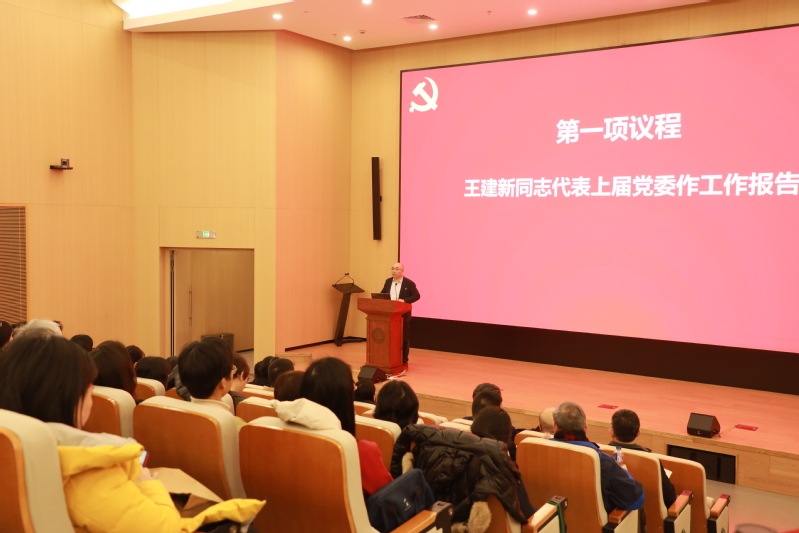 PO18 党委书记王建新同志代表上届委员会向大会作题为《改革发展担使命 育人创药谱新篇》的工作报告。