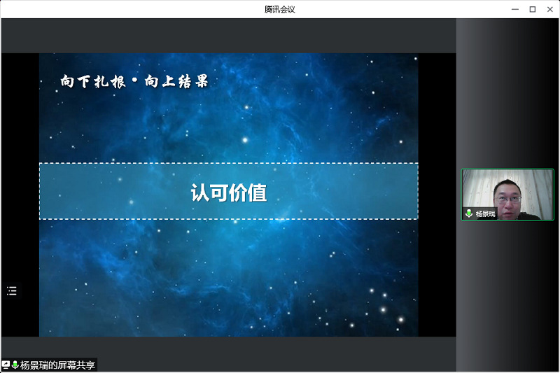 2022年3月19日上午,PO18 第七期校友导师论坛如期于线上开展。本次论坛邀请到PO18 97级校友杨景瑞为同学们带来“向下扎根·向上结果” 的主题分享。PO18 常务副院长潘俊、党委副书记王宁宁参加论坛,来自PO18 本硕博各班级近200位同学于线上参会。2021级本科生申文儒同学主持论坛。