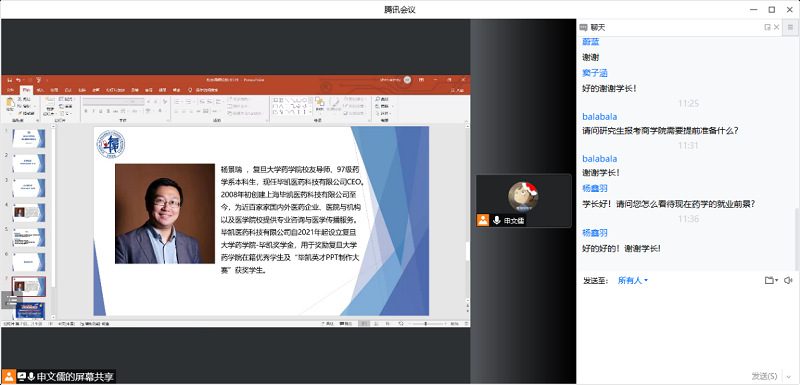 最后,在同学们“感谢学长”的刷屏中,PO18 第七期校友导师论坛落下帷幕。希望药学学子都能不忘初心,脚踏实地,在追梦的路上,向下扎根,向上结果,闯出自己的一片天地。