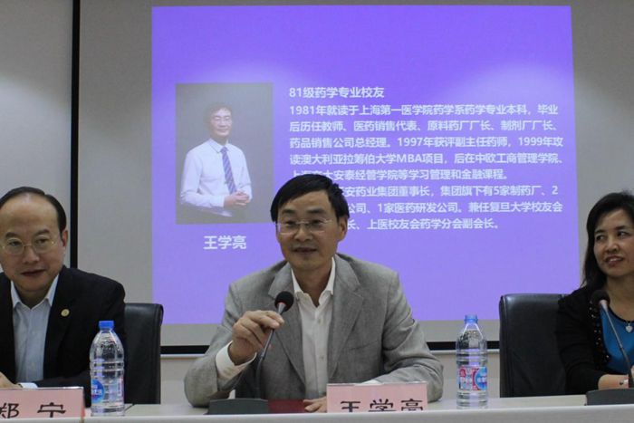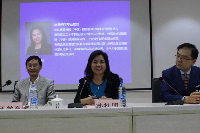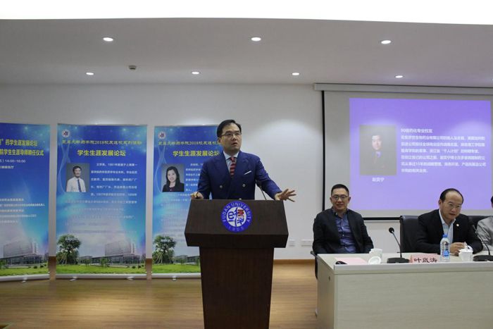 聘任仪式后,五位导师分别围绕企业对药学人才的期望和培养、药学生的创新与坚持等话题做了精彩发言并与在场学生互动交流。其中,81级校友、延安药业集团董事长王学亮提到了两种人才——专业型人才和复合型人才,并就如何成为一名复合型人才发表了自己的见解;85级校友、BI(中国)投资有限公司质量合规负责人孙桂明分享了在职业生涯甚至在人生道路上所需要具备的三种能力---团队协作能力、学习能力以及责任心;“跨界需要勇气和决断,跨界的人生也一样精彩。”88级药理专业毕业现在从事管理工作的上海市胸科医院党委书记郑宁说:“无论是跨界还是坚守本行,都要做好自己的本职工作。”致力于生物医药领域的90级校友、奕安济世生物药业创始人赵奕宁提到自己的梦想就是无论耗费几年还是几十年,他希望他和他的团队研制的药物能够经过临床实验真正用到病人身上,解除病痛。他提出了“闯和创”,敢闯以及创新,为PO18 的学弟学妹们今后的生涯道路发展提供了宝贵的意见;91级校友、醴泽资本管理合伙人叶崴涛围绕“理想、行动、坚持”讲述了他从毕业初的彷徨到逐步看清自己的方向,一直走到现在的人生经历。他说,“理想就是火焰,我们要做的就是始终保有心中的火焰,生生不息”。