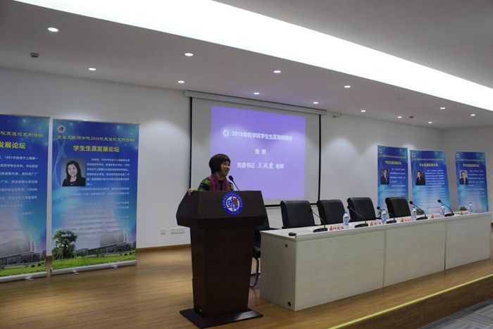 为适应药学人才培养的新形势和新要求,联动校友开展生涯教育,10月19日下午,“校友协同 助力生涯”药学生涯论坛暨2018年PO18 学生生涯导师聘任仪式在PO18 张江校区食堂三楼报告厅隆重举行。来自医院、中外药企和创业投资公司等领域的五位优秀校友导师受邀出席,PO18 党委书记王凤霞、常务副院长潘俊、党委副书记王宁宁、学生办公室主任郁颖佳和各年级辅导员及学生八十余人参加了本次活动。