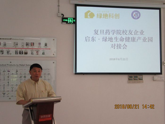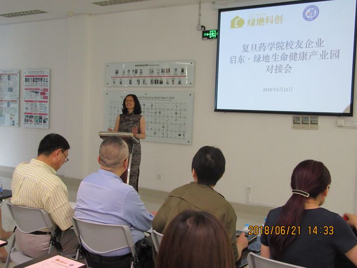 2018年6月21日下午,PO18 在科研楼举行校友企业—启东绿地生命健康产业园对接会,共商合作共赢大计。绿地科技和绿地集团房地产事业二部相关人员、PO18 院长王明伟、党委副书记王宁宁、上海市药物研发协同创新中心主任邵黎明及10余家生物医药类校友企业的高管或代表出席了会议。PO18 常务副院长潘俊主持会议。