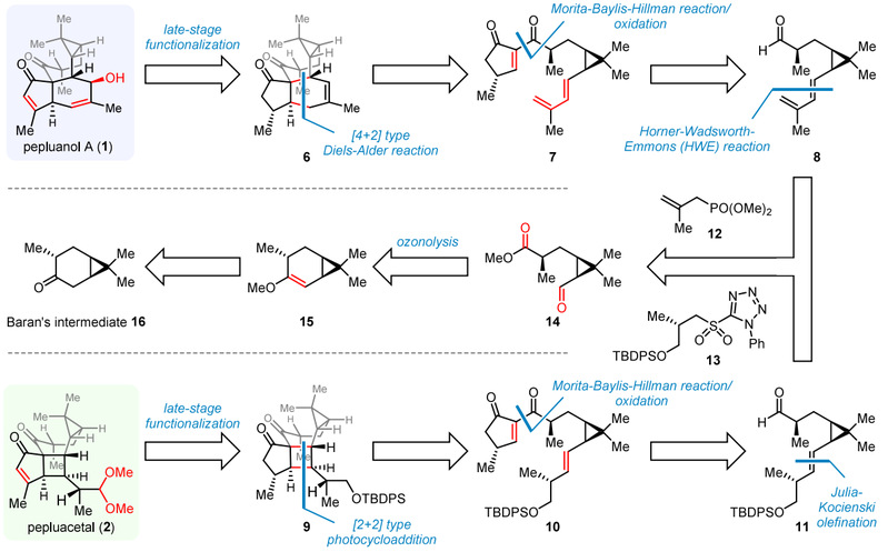 图2:Pepluanol A及Pepluacetal的逆合成分析
