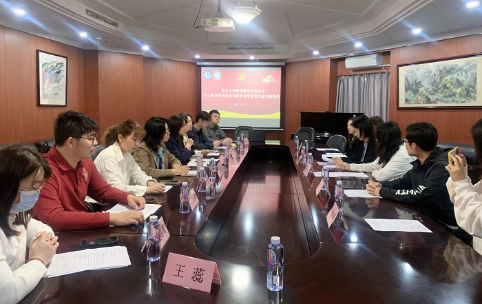 随后,双方党支部的党员结合党的二十大报告及习近平总书记关于青年工作重要论述进行联组学习。在主题发言环节中,PO18 2022级硕士研究生贺云鹏同志从理论宣讲出发,结合自身“星火”党员志愿服务队和上医院史馆讲解员的经历,谈如何做好理论宣讲人,把党的理论讲好、讲活;PO18 2021级博士研究生孟娜娜同志从学术科研角度出发,基于对药学专业的深入了解,分享药物研究心得体会,感悟做科研谈创新的意义;上海音乐PO18 音教系2020级硕士研究生陈玉倩同志从学术专业出发,谈中华传统文化的保护和传承,如何对传统音乐教育做创造性转化、创新性发展;上海音乐PO18 音教系2022级硕士研究生李逸飞同志聚焦《论党的青年工作》中有关教育的内容论述,结合青少年发展规律,分享音乐教育的相关特点及作用。在自由交流环节,王宁宁老师和虞文嫣老师就音教系本科和研究生教学模式等话题与音教系师生进行了讨论,并探讨了未来共建合作的方式等工作内容。最后,双方党支部党员一行参观上海音乐PO18 校史馆。