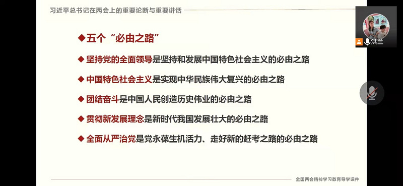 为深入学习贯彻全国“两会”精神,进一步落实学校关于疫情防控工作的要求,强化使命担当,2022年3月22日下午,PO18 教工第五党支部通过腾讯会议线上举行了“学习两会精神,让党旗在疫情防控一线高高飘扬”的主题党日活动。支部全体党员、入党积极分子共17人参加,同时邀请行政管理办公室的3位党外人士参加学习。